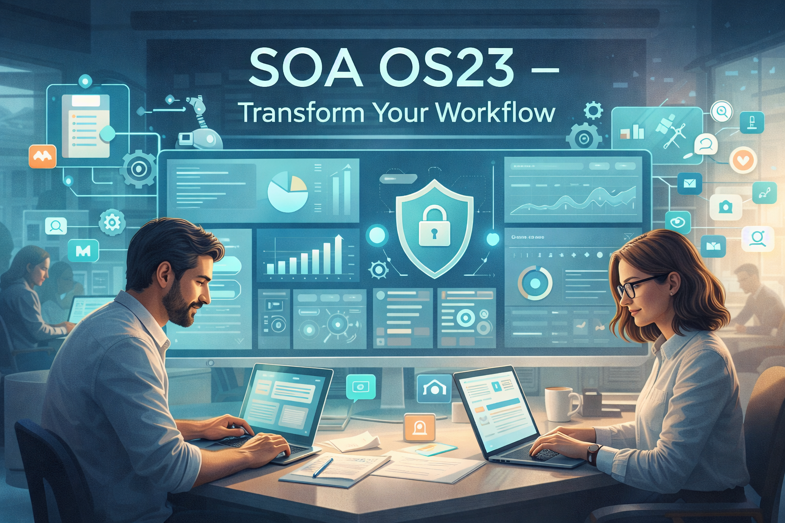 Real-time analytics and reporting capabilities provide valuable insights into performance and operations, helping teams make faster, data-driven decisions. Combined with improved communication and collaboration features, SOA OS23 helps organizations streamline operations, increase productivity, and adapt to the fast-changing digital workplace.
